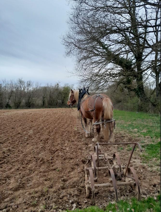 Mon projet reflète un engagement pour une agriculture paysanne, éthique, locale et durable. Dans mes jardins, le sol est travaillé avec douceur au rythme des sabots de Felyne, ma jument comtoise.