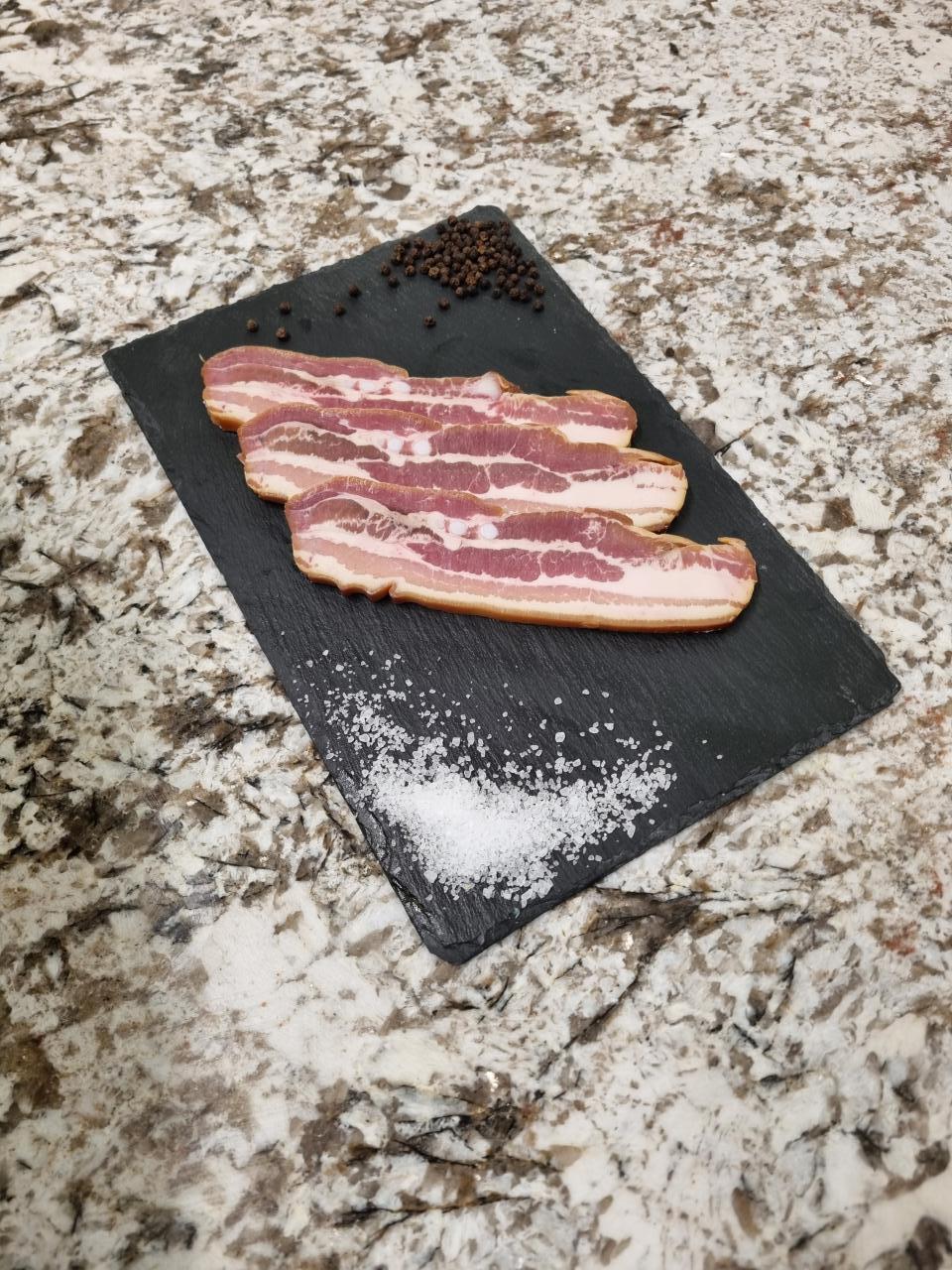 La Maison du Cochon vous propose de la viande de porc sous forme de poitrines (lards) tranchées puis fumées au feu de bois.
