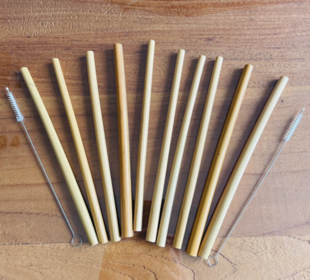 - Lot de 10 Pailles en bambou + 2 goupillon