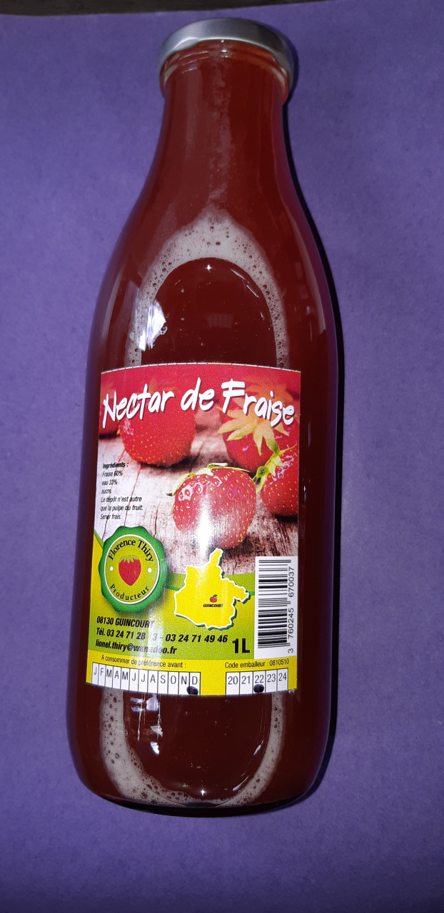 Nectar de fraise. fraises issues de nos tunnels, élevées en hors-sol.