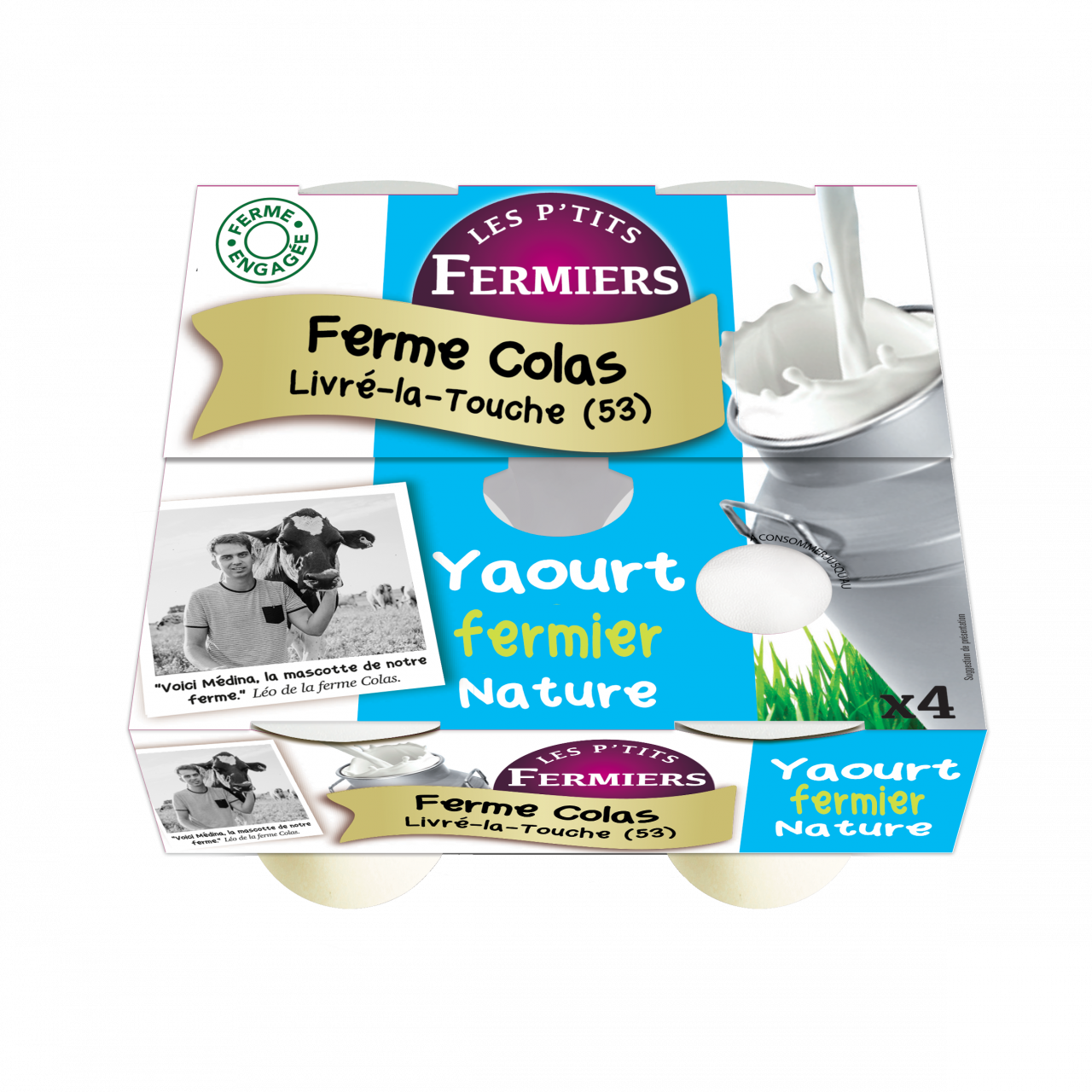 Allergènes : lactose Conditionnement : 4x125g Durée de conservation : 20 jours Ingrédients : "Lait de nos vaches pasteurisé et non homogénéisé, lait écrémé en poudre*, ferments lactiques (lactobacillus bulgaricus, streptococcus thermophilus) * Produits issus de l'Agriculture Biologique" Colorants ou arômes : aucun Origine : Livre la Touche (France)
