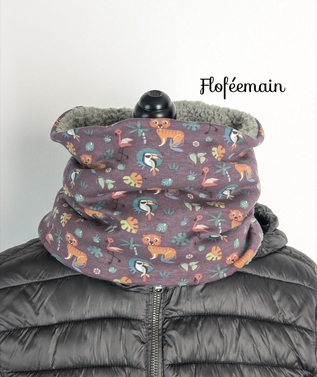 Tour de cou pour enfant qui remplace l'écharpe. Facile à enfiler, il tiendra chaud à votre enfant tout au long de l'hiver. Il est en jersey de coton et tissu polaire toute douce à l'intérieur.