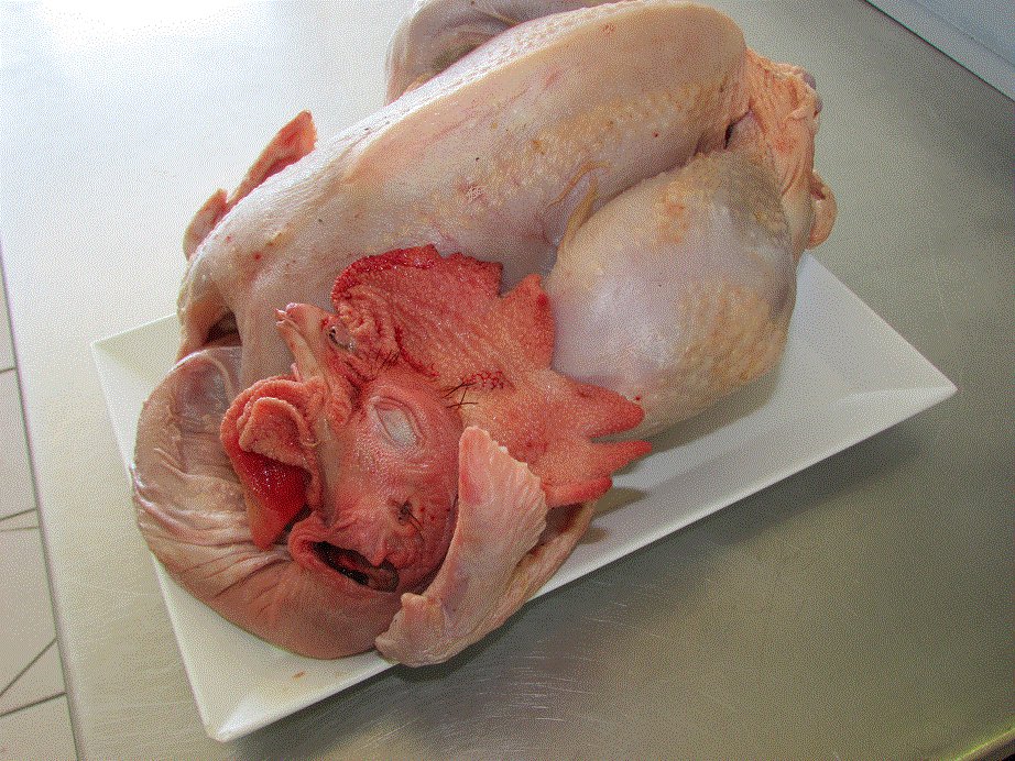 Volailles prêt à cuire de 2.5kg à 4.5kg. (avec foie, gésier et tête).
