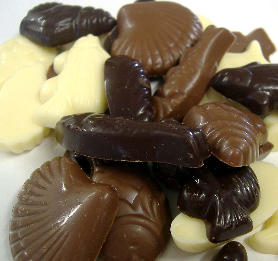 Coquillages et crustacés... une jolie friture de chocolats noir, lait et blanc à offrir à vos invités ou pour se faire plaisir.