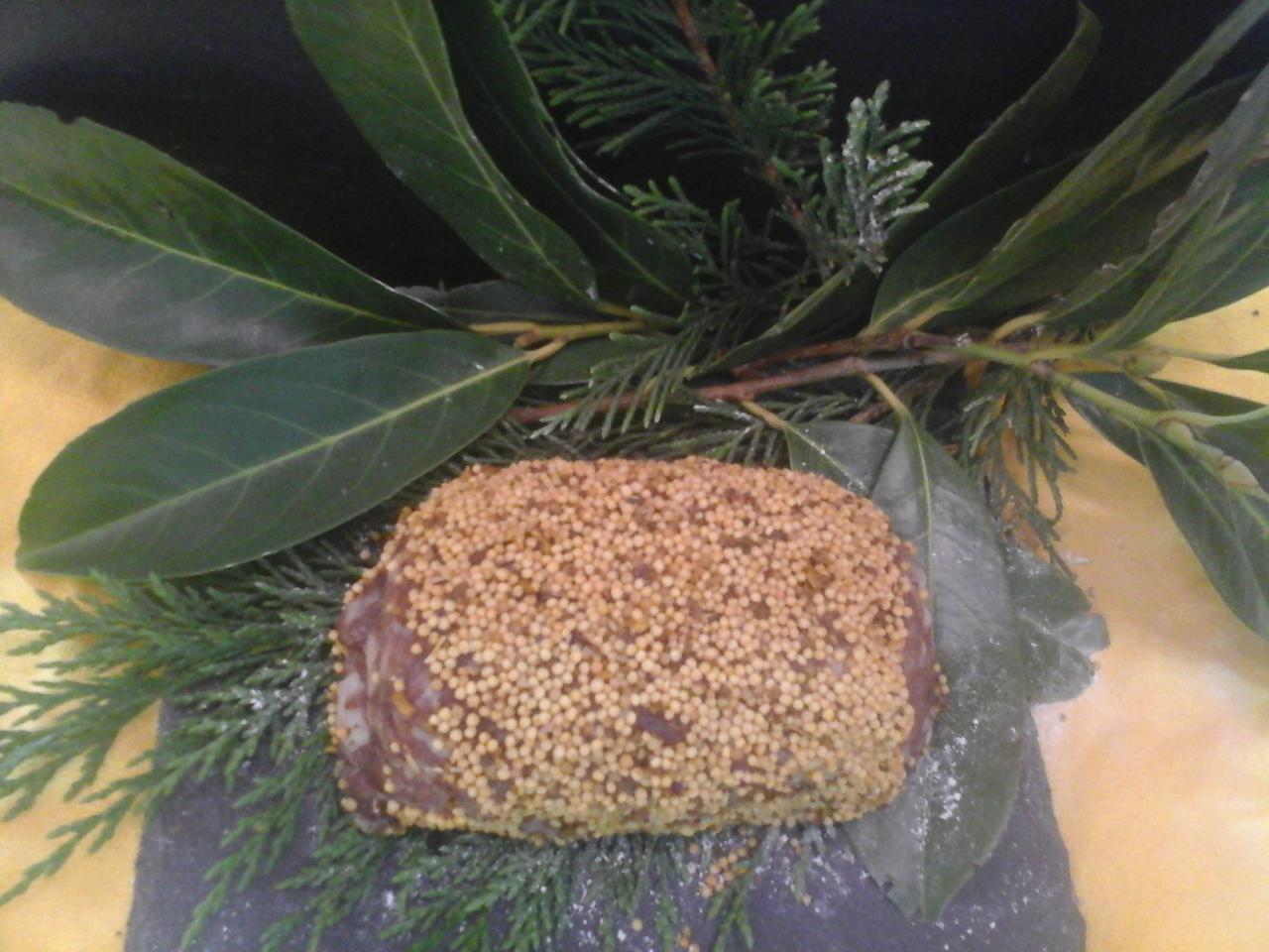 Le pavé du Morvan est composé d'une chair à saucisson hachée finement, façonnée à la main en forme de petit pain. Sa saveur est moelleuse et fondante. Lors du façonnage , nous roulons la chair dans un mélange de graine de moutarde hachées .