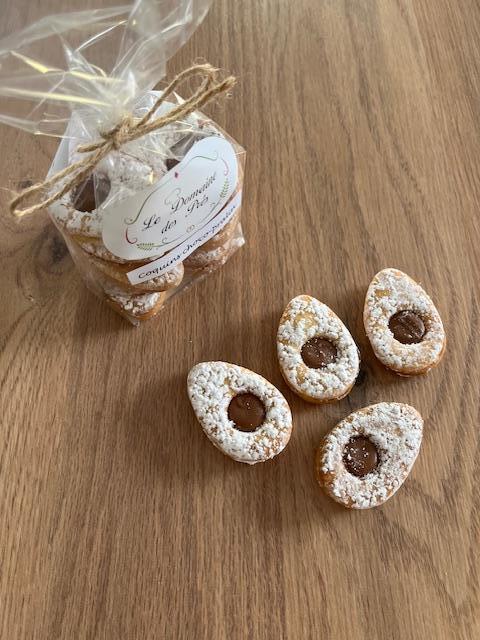 Allergènes : Farine, Beurre, Oeuf Durée de conservation : 3 mois Ingrédients : Chocolat au lait et pralin (38%), Farine, Beurre, Sucre, Œuf, Sucre vanillé, Levure, Sel, Sucre glace.
