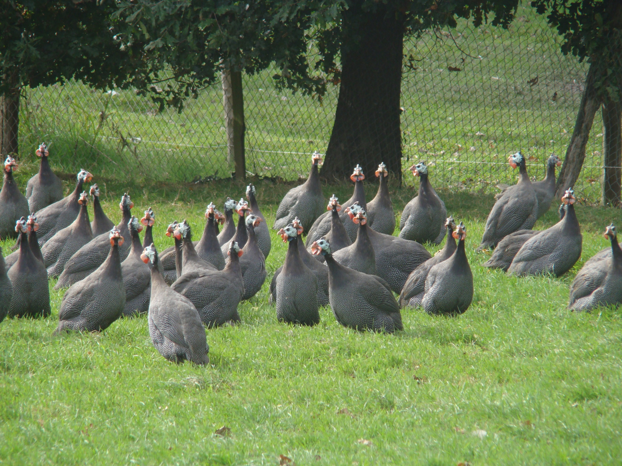 Pintades plein air élevé aux céréales de la ferme et abattu sur place dans notre labo