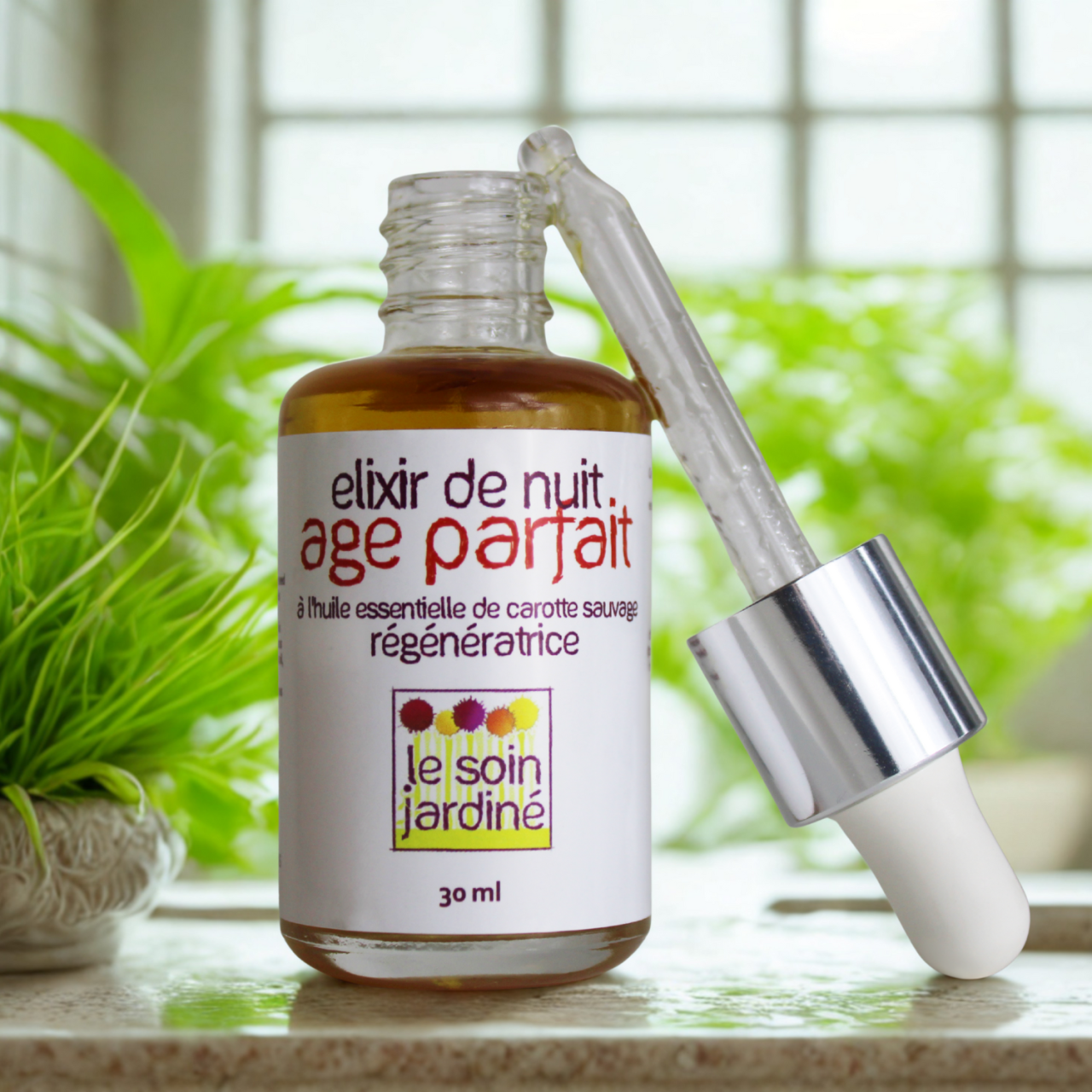 L'élixir de nuit Age Parfait a été créé pour régénérer les peaux matures durant la nuit, grâce notamment à l'huile essentielle de carotte sauvage.