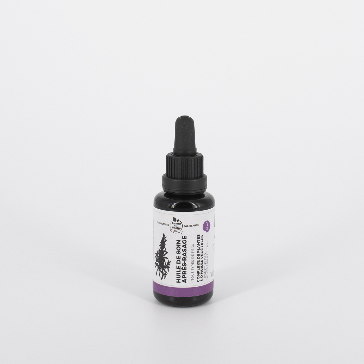 Nous avons choisi un flacon anti-UV en verre violet pour assurer une haute protection à cette huile de soin.