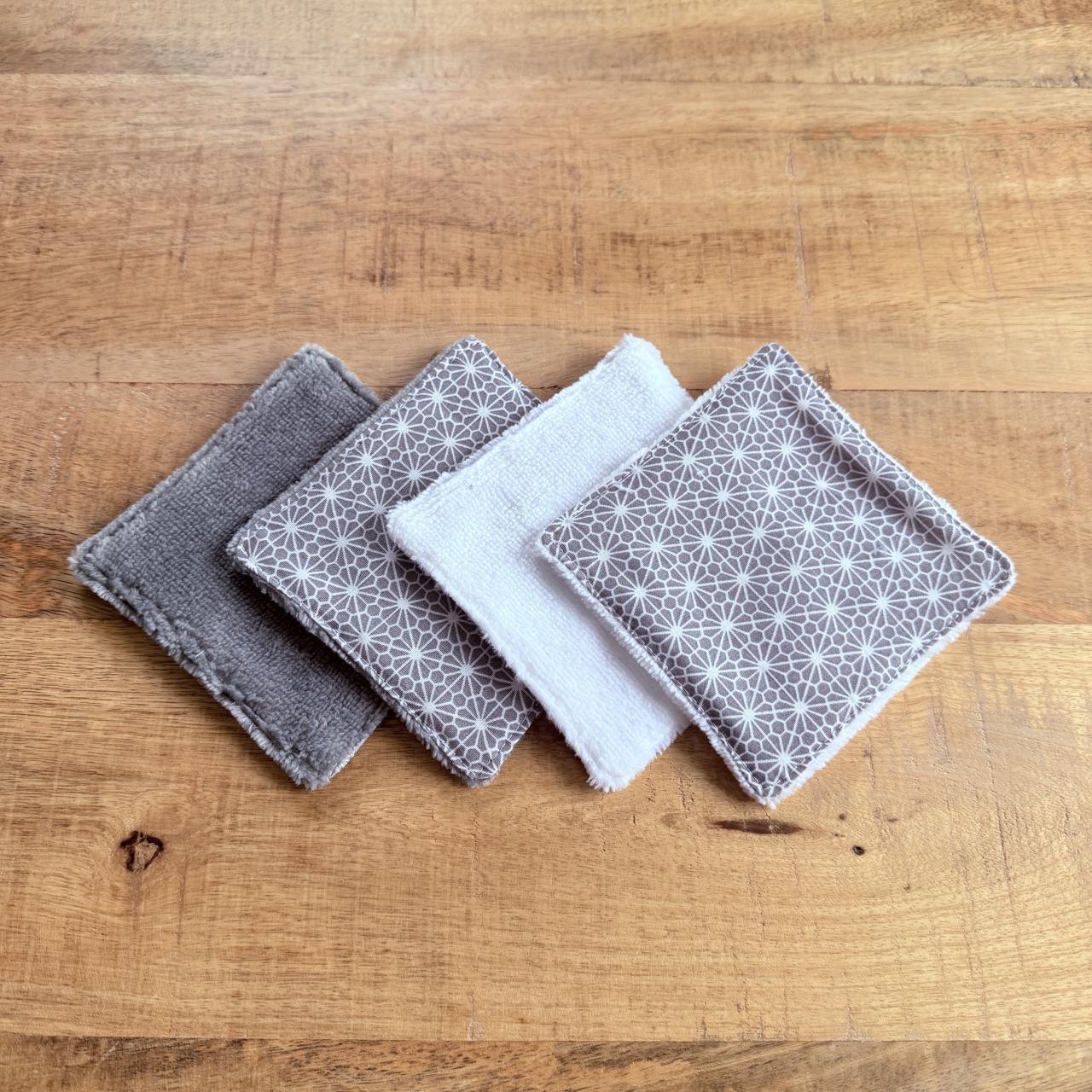 - 1 face en éponge douce grise / 1 face en coton (x2)
