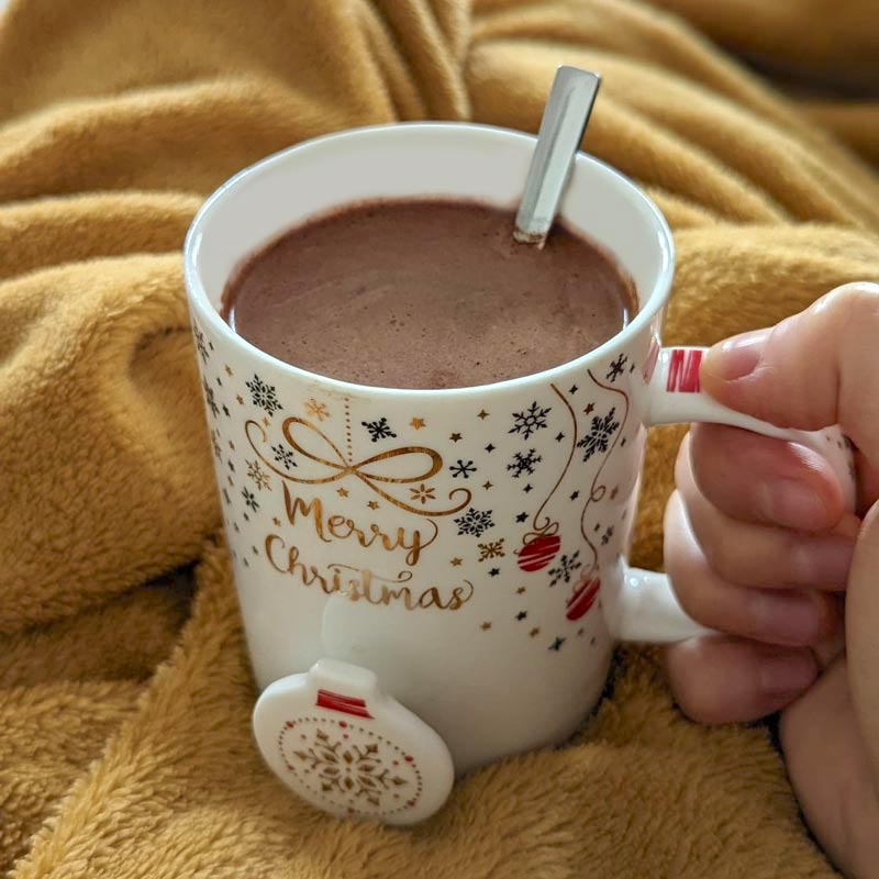 Il vous suffit de faire chauffer une tasse de lait animal ou végétal, d'ajouter 1 à 2 cuillères à café de cacao et HOP c'est prêt !