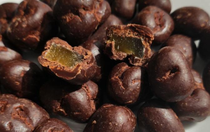 Le gingembre confit enrobé de chocolat noir ( 72% de cacao )