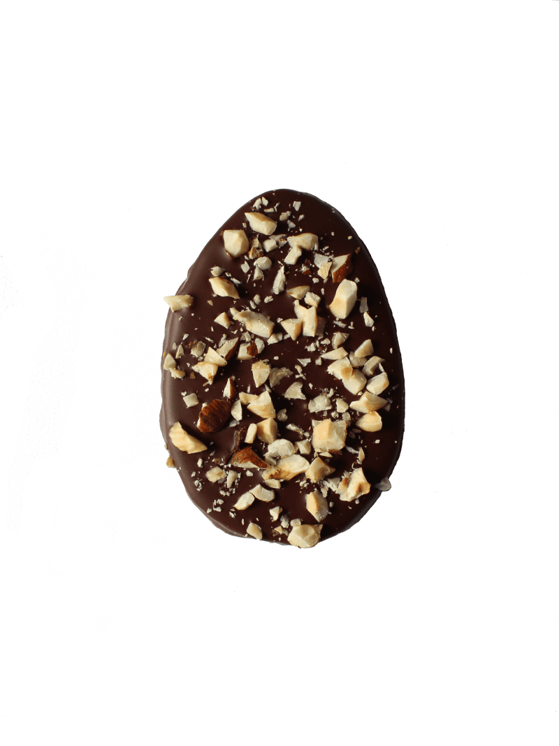 Enrobé de chocolat noir 70% ou lait 40% de cacao.