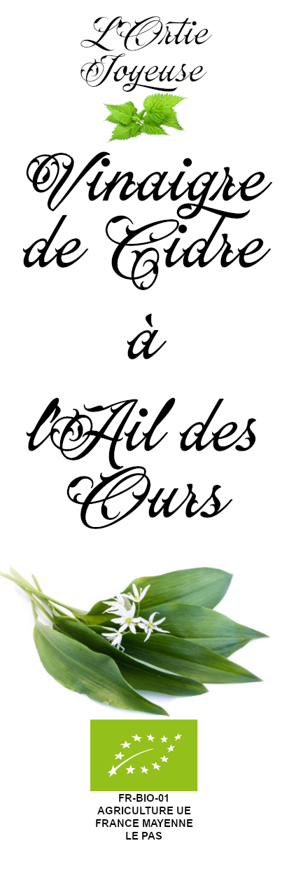 Ingrédients : Vinaigre de cidre de la ferme bio, ail des ours bio