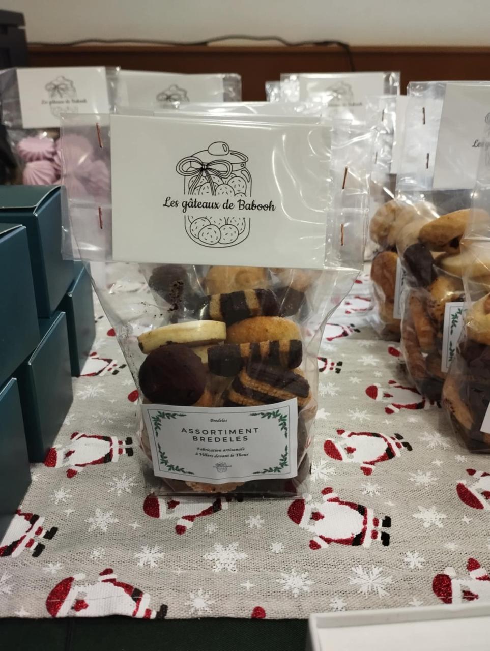Ingrédients : Bredeles : Farine de blé, Sucre, Beurre, Oeufs, Noisettes, Amandes, Cacao, Crème, Cannelle, Orange, Citron, Levure chimique