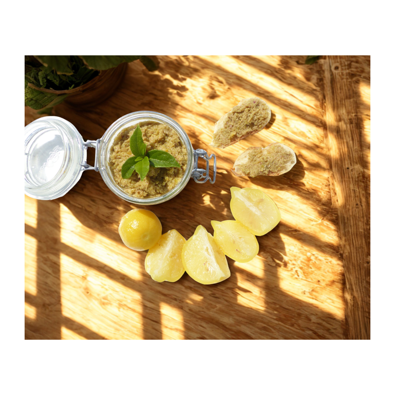 Un mélange harmonieux d'olives et de citron, soigneusement préparé avec des ingrédients de la plus haute qualité.