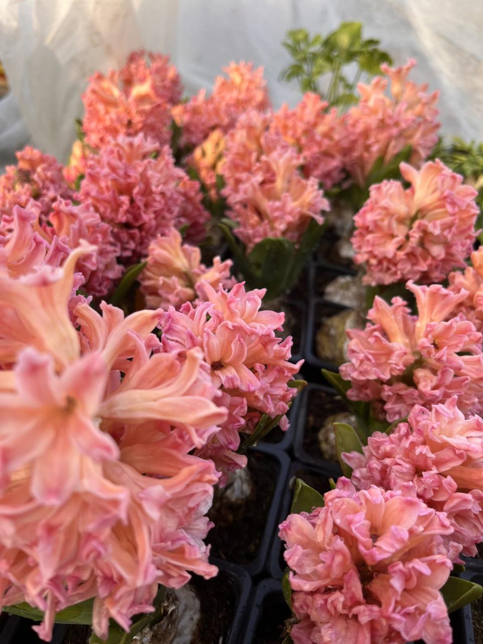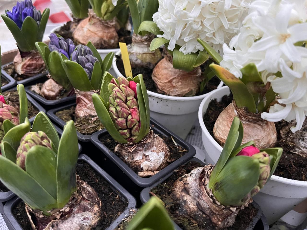 Je propose des jacinthes en godet de 9cm, 1 bulbe.