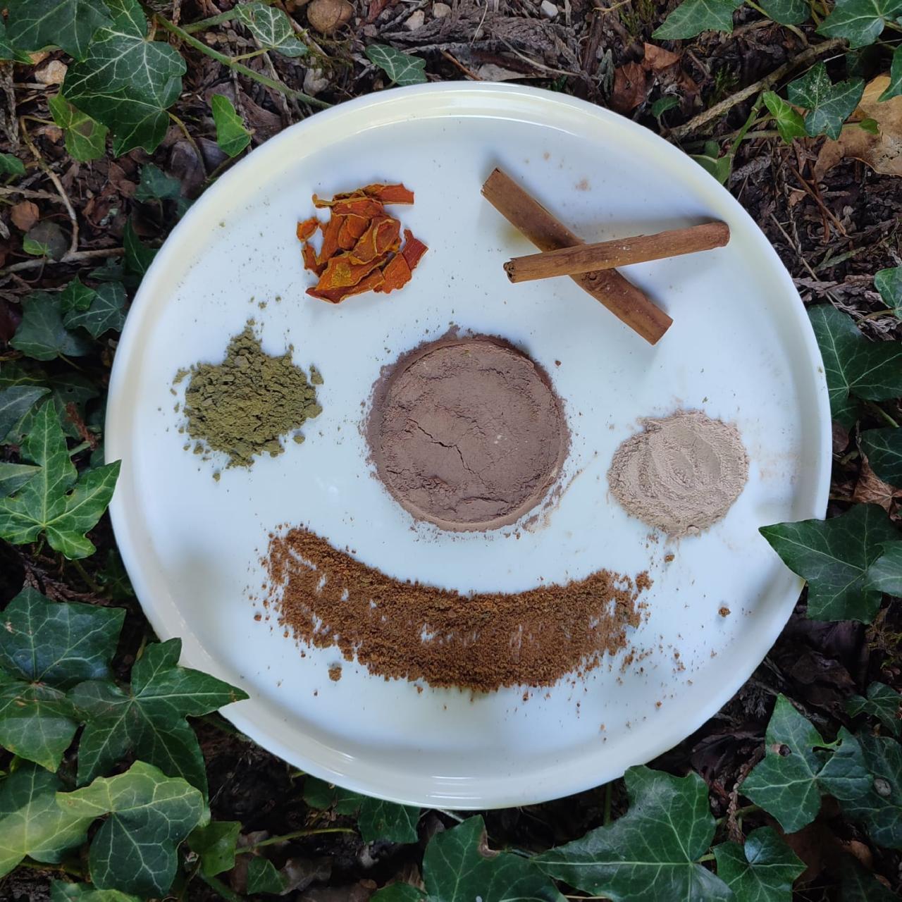 Ingrédients : cacao* cru** pur (60%), sucre de canne complet*** (22%), lucuma (6%), protéines de graines de chanvre (6%), cannelle (5%), curcuma (1%).