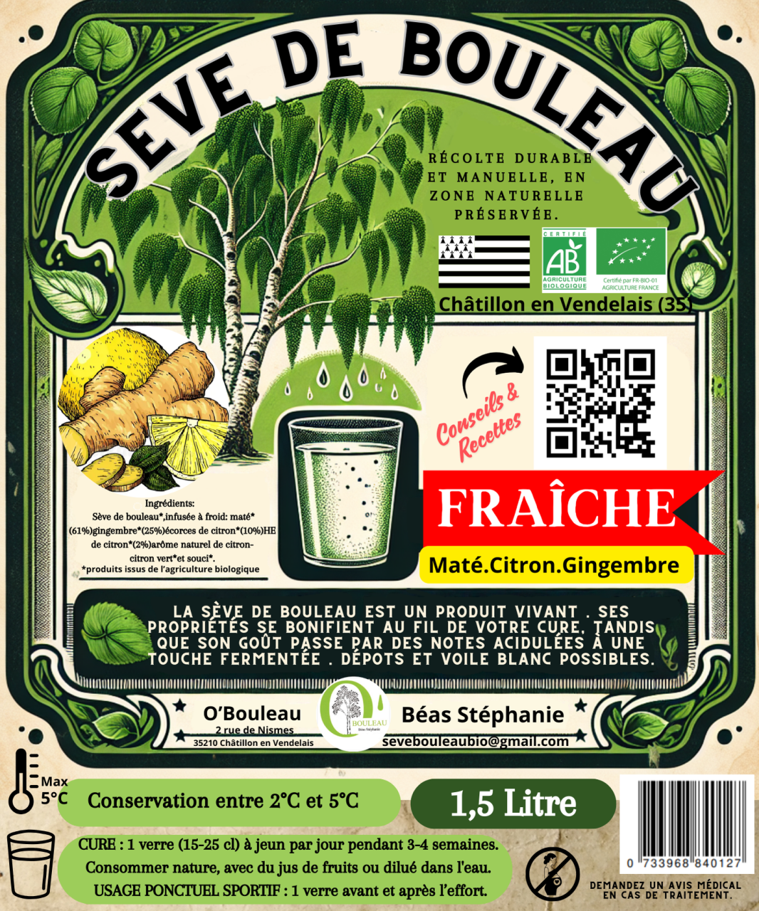 Sève de Bouleau Fraîche PEPS (citron gingembre maté)- Récolte 2025