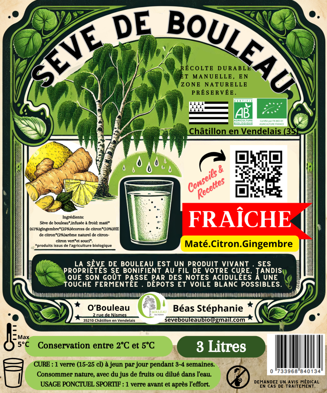 Découvrez notre sève de bouleau fraîche, récoltée en 2025. Ce produit naturel est expédié avec des accumulateurs de froid pour garantir sa fraîcheur. Pensez à récupérer votre commande rapidement au point relais et conservez-la au frais à 4°C pour maintenir ses bienfaits.