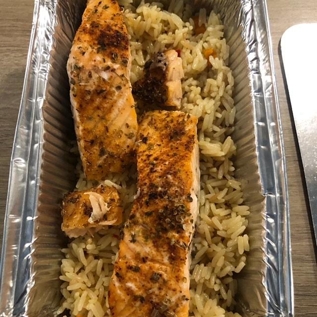la portion de Saumon et Riz pilaf environ 400 grammes