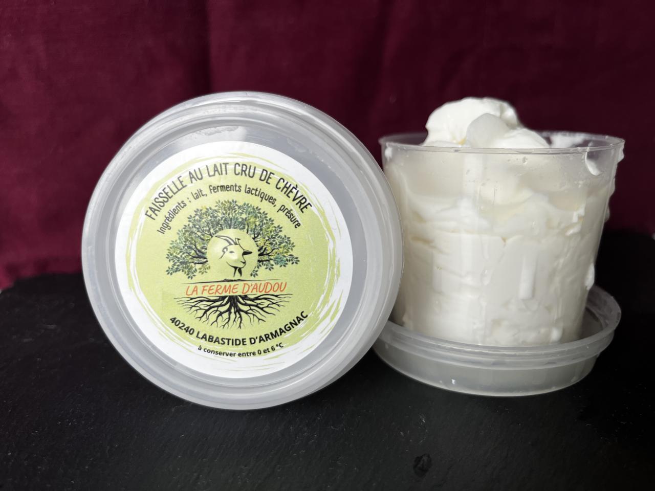 Caillé de chèvre au lait cru et son lactosérum riche en probiotiques.