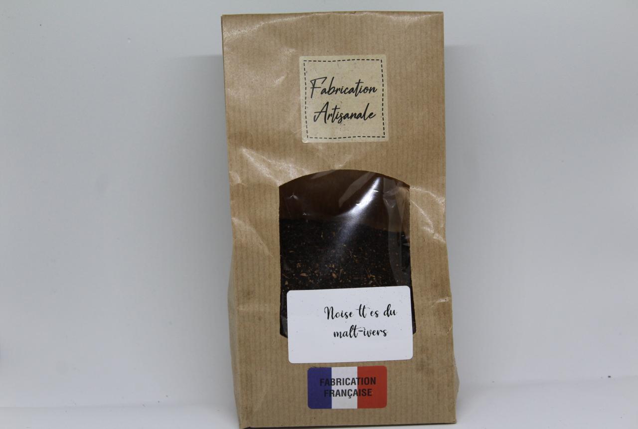 Notre Café de Malt à la Noisette est une boisson 100 % naturelle, sans caféine, élaborée à partir d’orge bio cultivée localement (saint mathurin sur Loire) et torréfiée avec soin. Le maltage de l'orge est réalisé par mes soins de manière traditionnel dans mon atelier. Les noisettes sont issues de la culture biologique d'un nuciculteur installé dans le nord du Maine et Loire.
