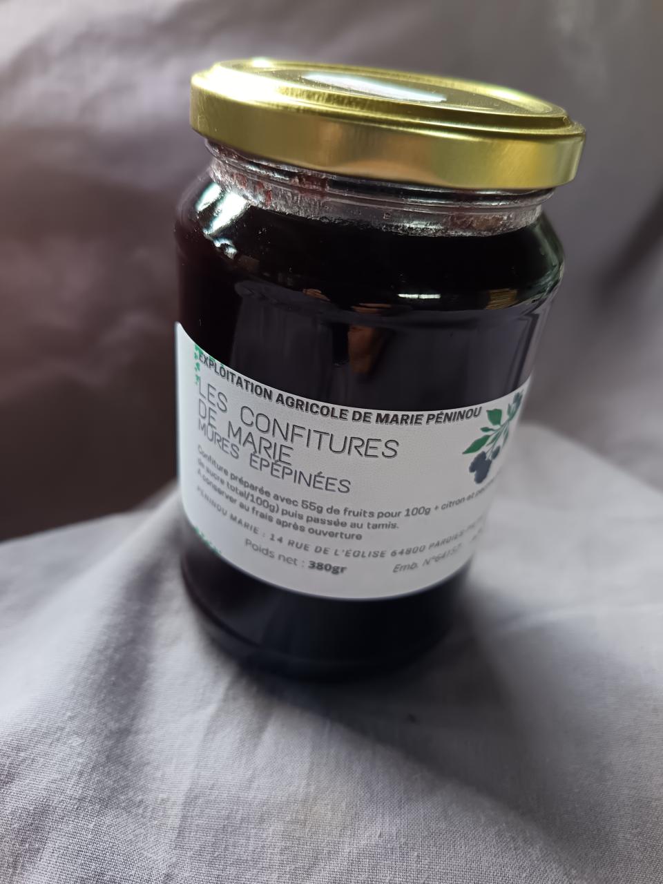 Confiture de mûres épépinées : la confiture est passée au tamis à la fin de la cuisson (produits issus de ma ferme en HVE, Haute Valeur Environnementale, et transformés par la ferme les Jardins d'Ossau)