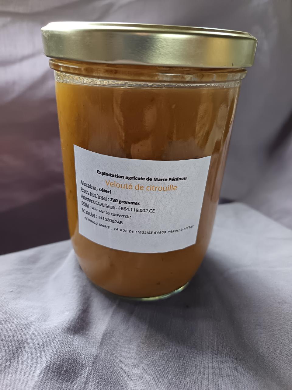 Velouté de citrouille (produits issus de ma ferme en HVE, Haute Valeur Environnementale, et transformés par le traiteur local Biraben).