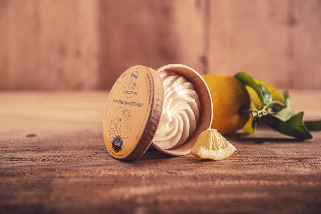 Ingrédients : eau, purée de citron, sucre, glucose, stabilisateur et emulsifiant.