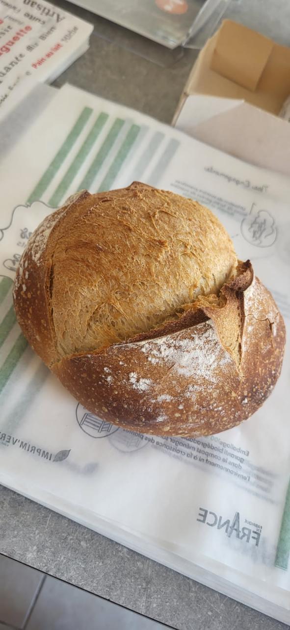 Pain rustique à la croûte épaisse et croustillante, avec une mie dense et parfumée. Parfait pour les repas ou les tartines généreuses.