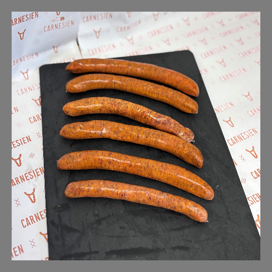 Nos merguez sont savoureuses, épicées et grillées à la perfection, parfaites pour accompagner vos plats ou se déguster seules.