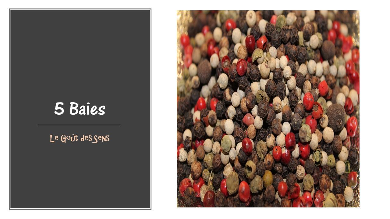 Mélange 5 baies : poivre noir, blanc, vert, baies roses et baies de la Jamaïque.