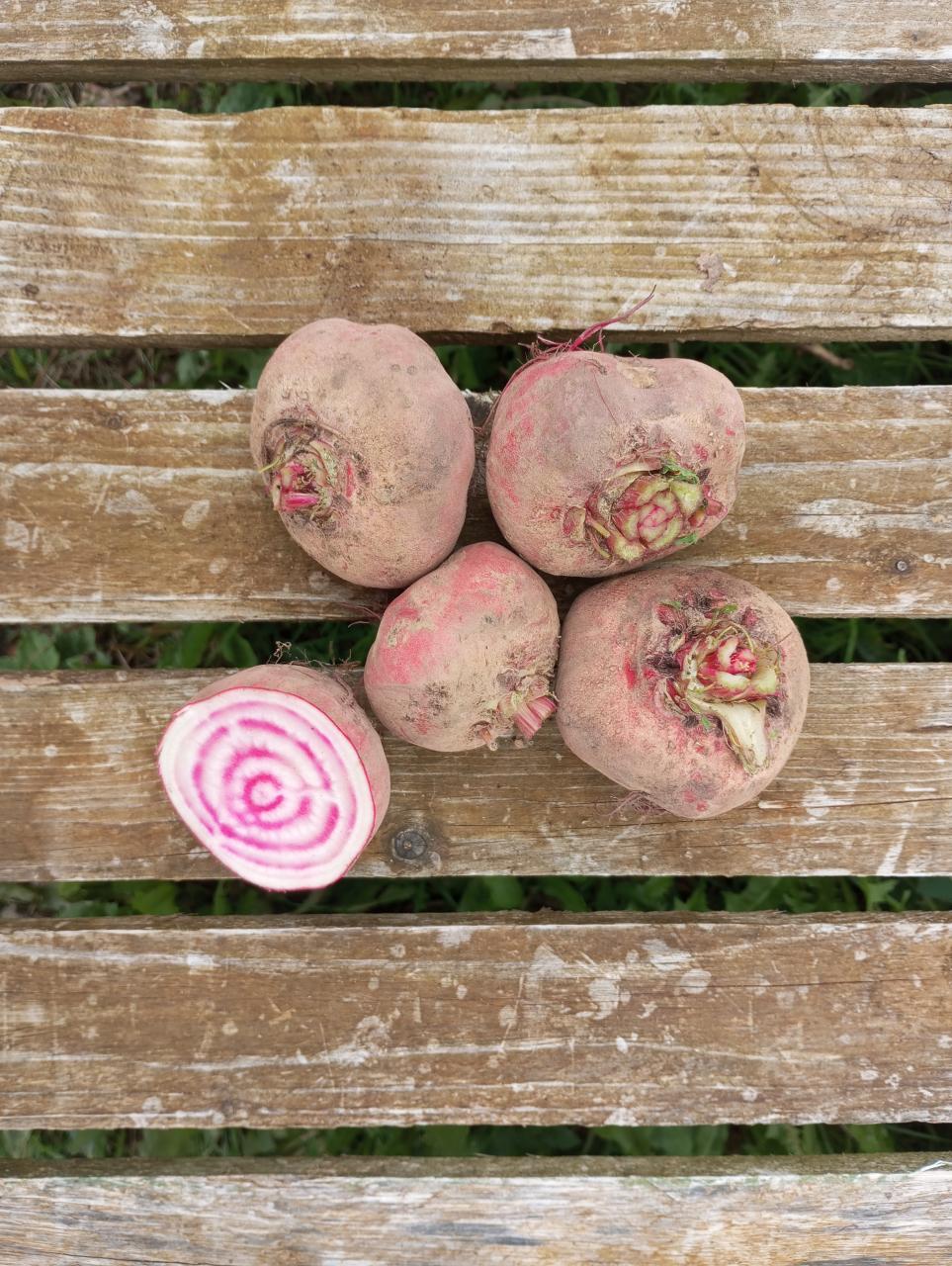 La betterave Chioggia a un goût moins terreux que celui de la betterave rouge et sa cuisson est plus rapide.