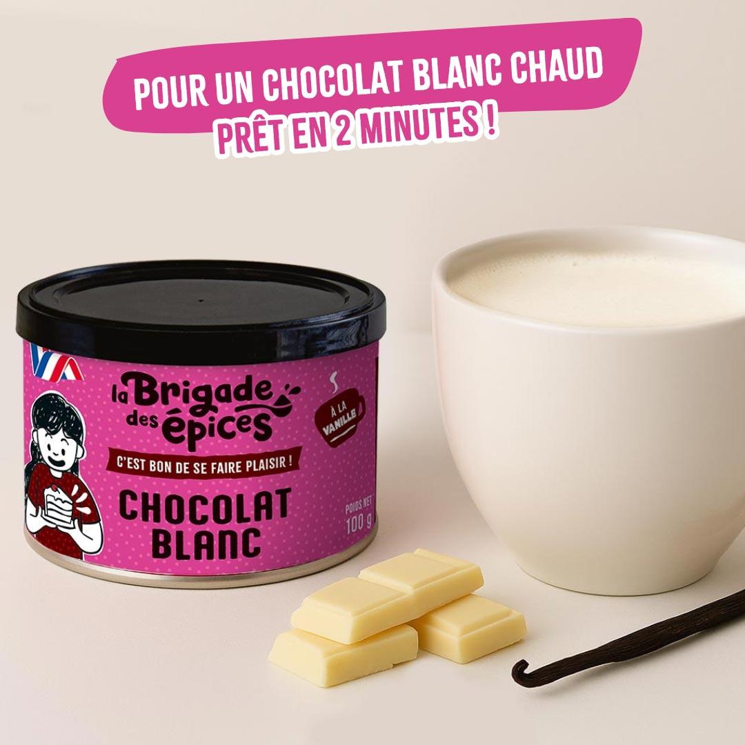 Pour vous préparer une délicieuse tasse de chocolat blanc chaud, rien de plus simple ! Grâce à cette préparation prête à l’emploi, il vous suffit de quelques minutes seulement pour préparer cette irrésistible boisson chocolatée.