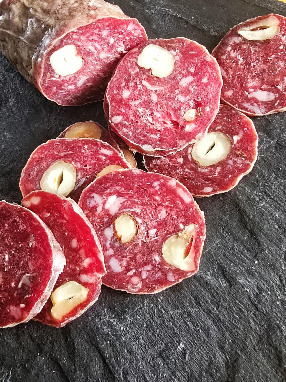 Ce saucisson artisanal de bœuf Made in Bussy le Repos 51330 séduit par ses arômes délicats et sa texture généreuse, sublimée par l’ajout de noisettes entières.