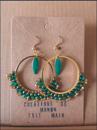 Ces boucles d'oreilles sont un modèle unique. Réalisées en perles tissées avec sequin émaillé.