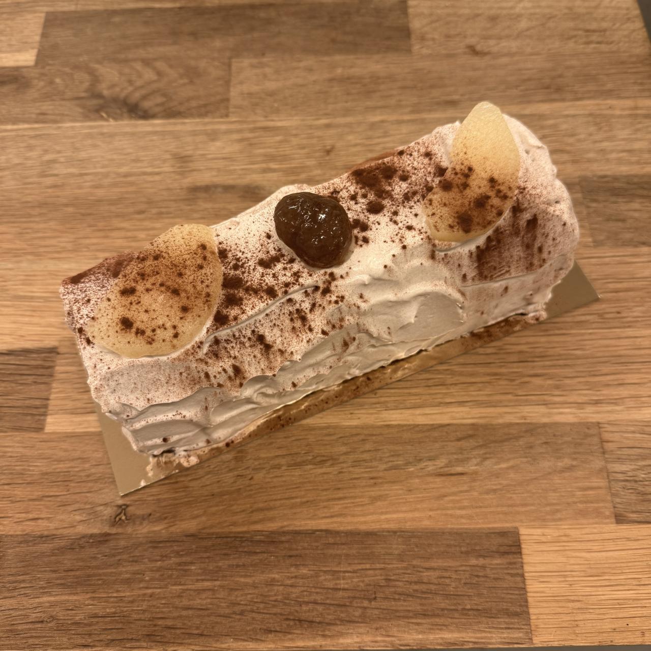 Biscuit chocolat, Sorbet poire, Glace aux marrons et morceaux de marrons glacés