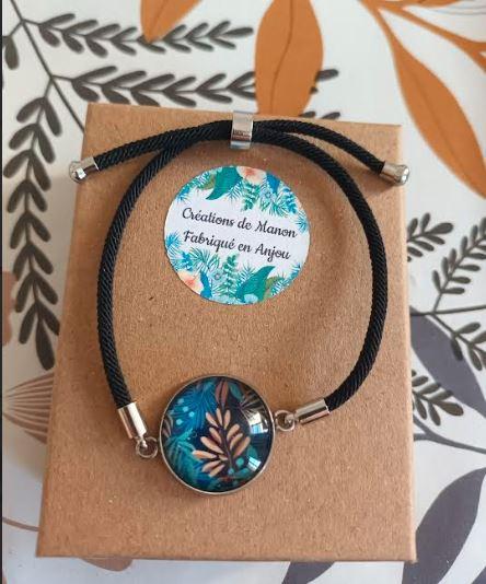 Bracelet avec cabochon en verre 20mm. Le cordon est réglable grâce à un système de perle coulissante pour s'adapter à la taille du poignet