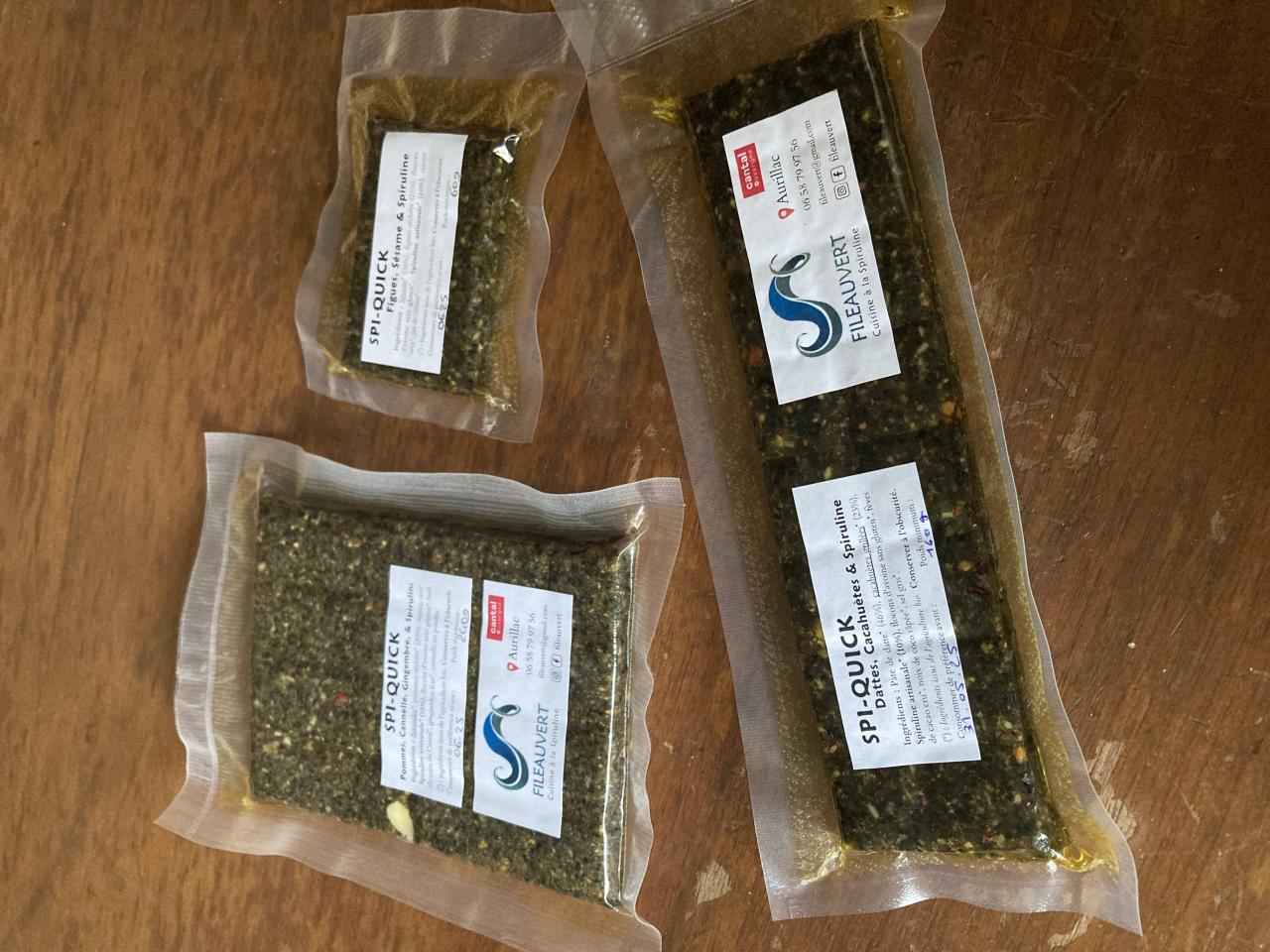 Conservation : 10 mois. Une fois le sachet ouvert, il suffit de le refermer avec une pince à linge, cela n'altère pas la conservation. Néanmoins, il est important de conserver les SPI-QUICK à l'abri de la lumière pour ne pas altérer les propriétés de la Spiruline.