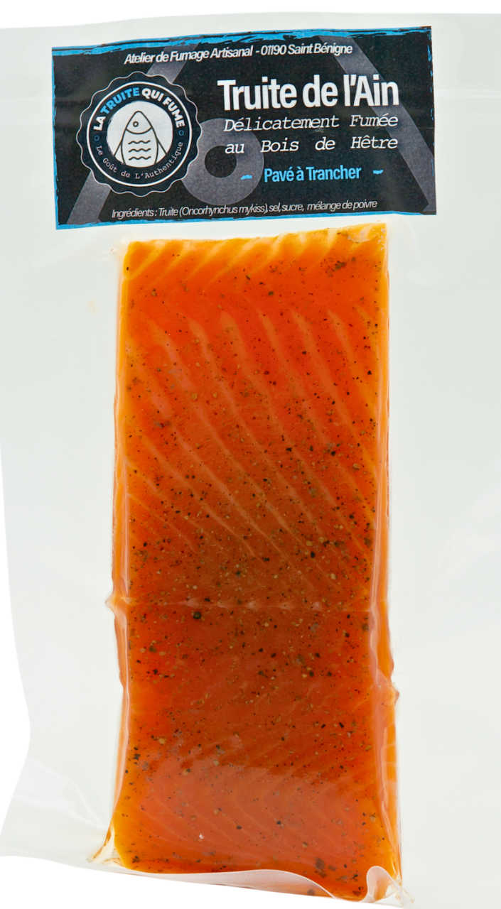 Élevée dans les eaux cristallines du Parc naturel du Haut-Jura, notre truite se distingue par sa finesse et sa délicatesse. Fumée par friction de bûche, elle développe des arômes subtilement boisés qui respectent la pureté du poisson. Une truite fumée tout en élégance, à la texture fondante et au goût délicatement équilibré.