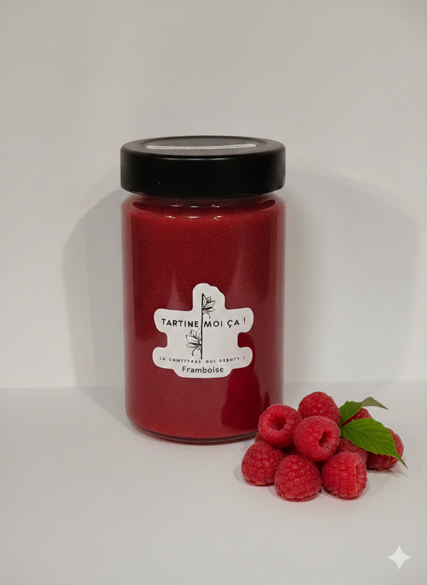 Tartine-moi ça et laisse tes papilles pétiller ! 😋 J’ai choisi des framboises bien mûres, doucement cuites avec juste ce qu’il faut de sucre pour que leur acidulé naturel brille. Une texture généreuse et pleine de morceaux, pour un vrai plaisir authentique à chaque cuillère. Sur une tartine, une brioche moelleuse ou même à la cuillère pour les plus gourmands, c’est un concentré de bonheur fruité. Et bien sûr, ramène ton pot vide : on lui offre une deuxième vie écolo et joyeuse 💛.