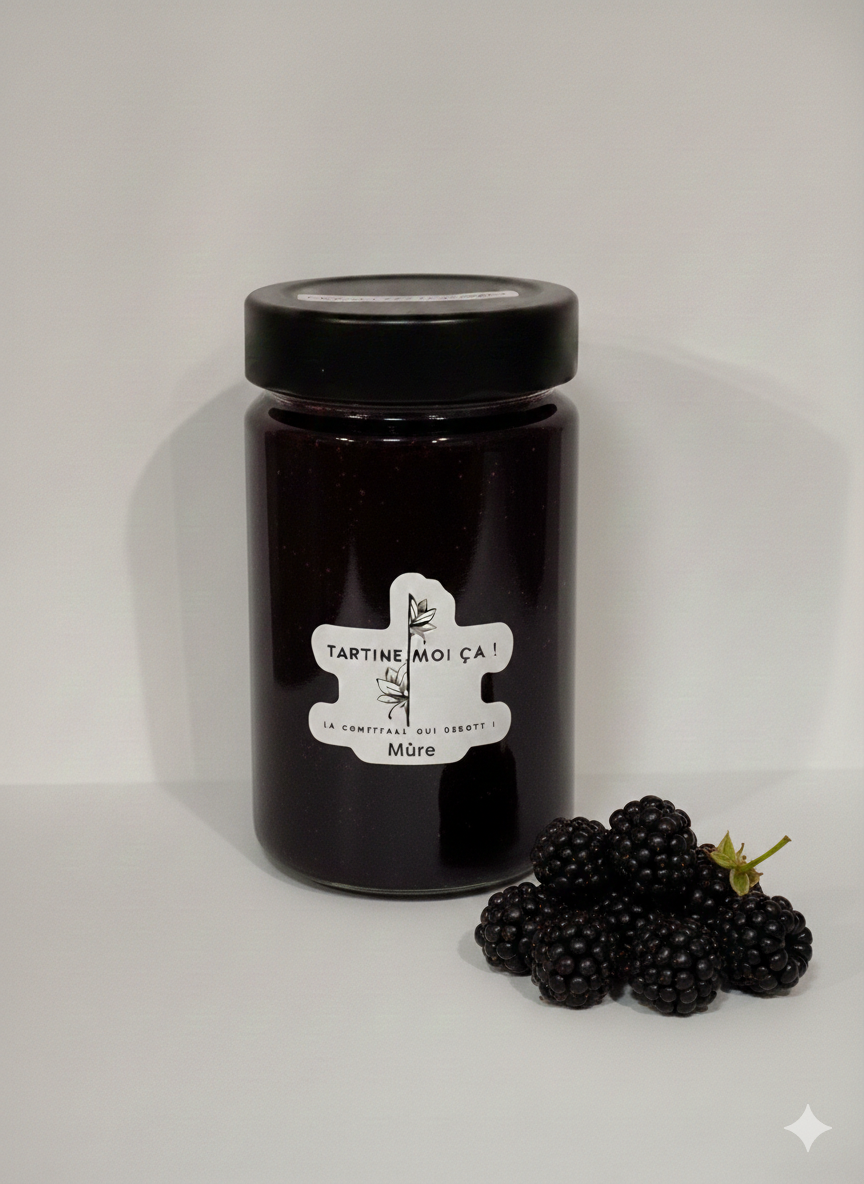 Tartine-moi ça et plonge dans l’intensité fruitée de l’été ! 😋 J’ai choisi des mûres bien mûres et parfumées, doucement cuites avec juste ce qu’il faut de sucre pour laisser éclater tout leur goût naturel. Une confiture authentique et généreuse, parfaite sur une tartine, dans un yaourt ou même à la cuillère pour les plus gourmands. Et comme toujours, ramène ton pot vide : on lui offre une deuxième vie écolo et fruitée 💛.