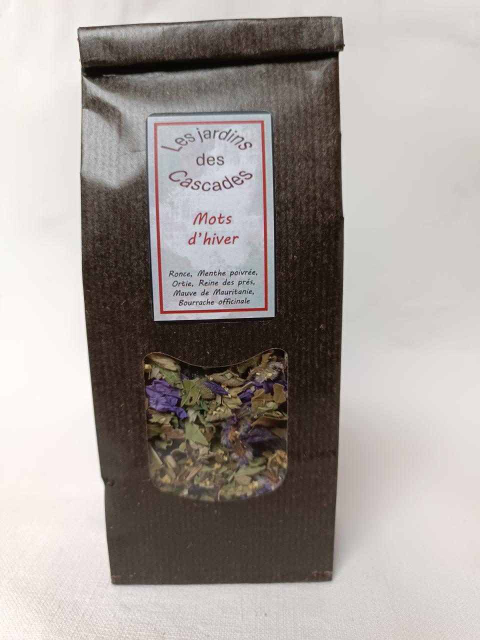 Ingrédients : Ronce, Menthe poivrée, Ortie, Reine des prés, Mauve de Mauritanie, Bourrage officinale