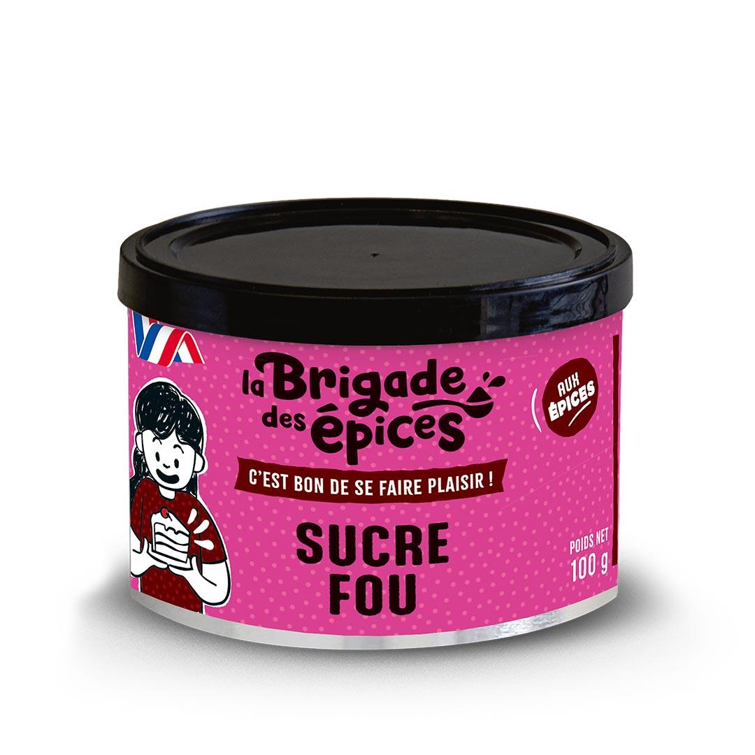 Le sucre fou c’est un mélange de sucres (blanc et Muscovado) délicatement parfumé d’épices douces et envoûtantes : fève tonka, vanille, orange, cannelle, muscade, cacao, clou de girofle, badiane et une touche de piment pour un twist audacieux.
