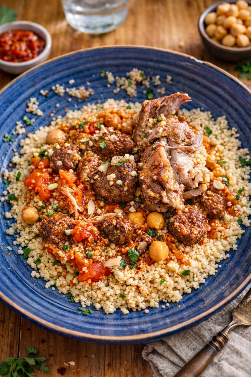 Un couscous généreux, riche en goût, idéal pour vos repas en famille, événements ou commandes spéciales.