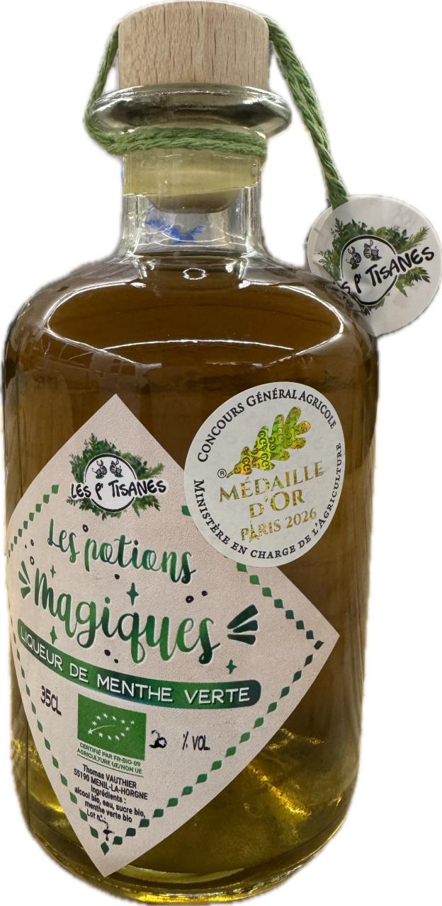 Liqueur de menthe verte (médaille d'or au CGA 2026 à Paris) à boire en digestif ou apéritif, remplacez l'Apérol par la liqueur pour obtenir un Spritz aromatisé aux plantes