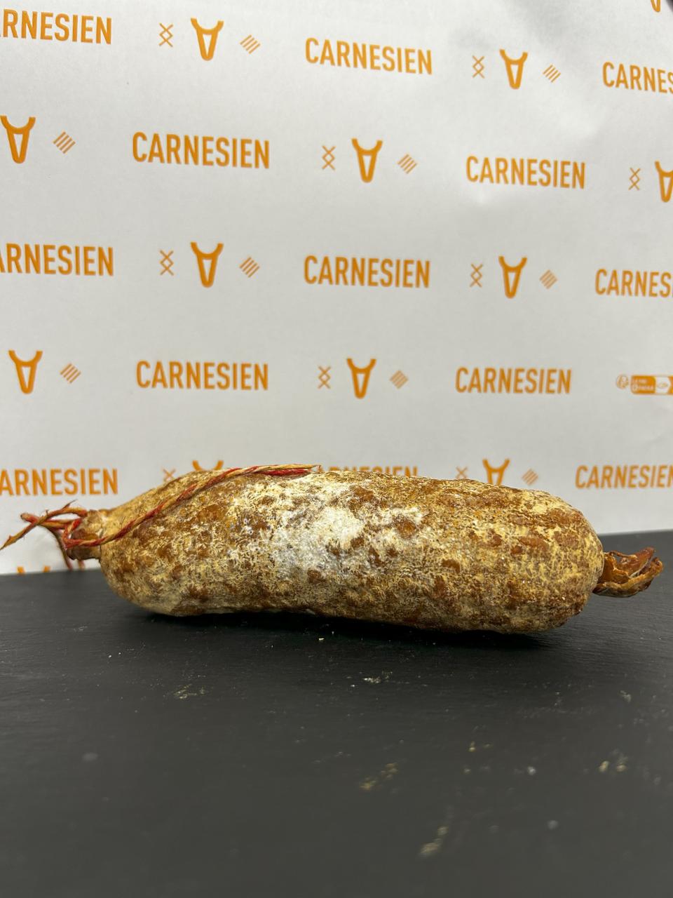 Saucisson sec pur porc, enrichi de morceaux de Comté fumé, offrant un mariage subtil entre la richesse de la viande et les arômes légèrement boisés et fruités du fromage. Sa texture ferme et fondante à la fois fait de chaque tranche un moment gourmand, idéal pour l’apéritif, les plateaux de charcuterie ou les encas raffinés.