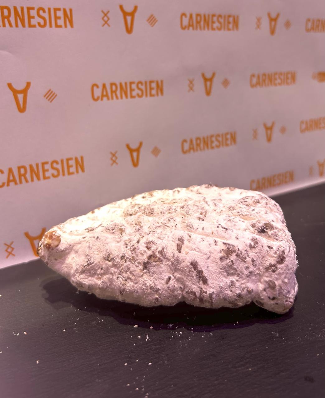 Saucisson sec en forme de boule, généreusement parsemé de noix, alliant le goût riche et légèrement épicé de la viande de porc à la douceur et au croquant des noix. Idéal à partager à l’apéritif ou à intégrer dans un plateau de charcuterie, il offre une expérience gourmande et raffinée à chaque bouchée.