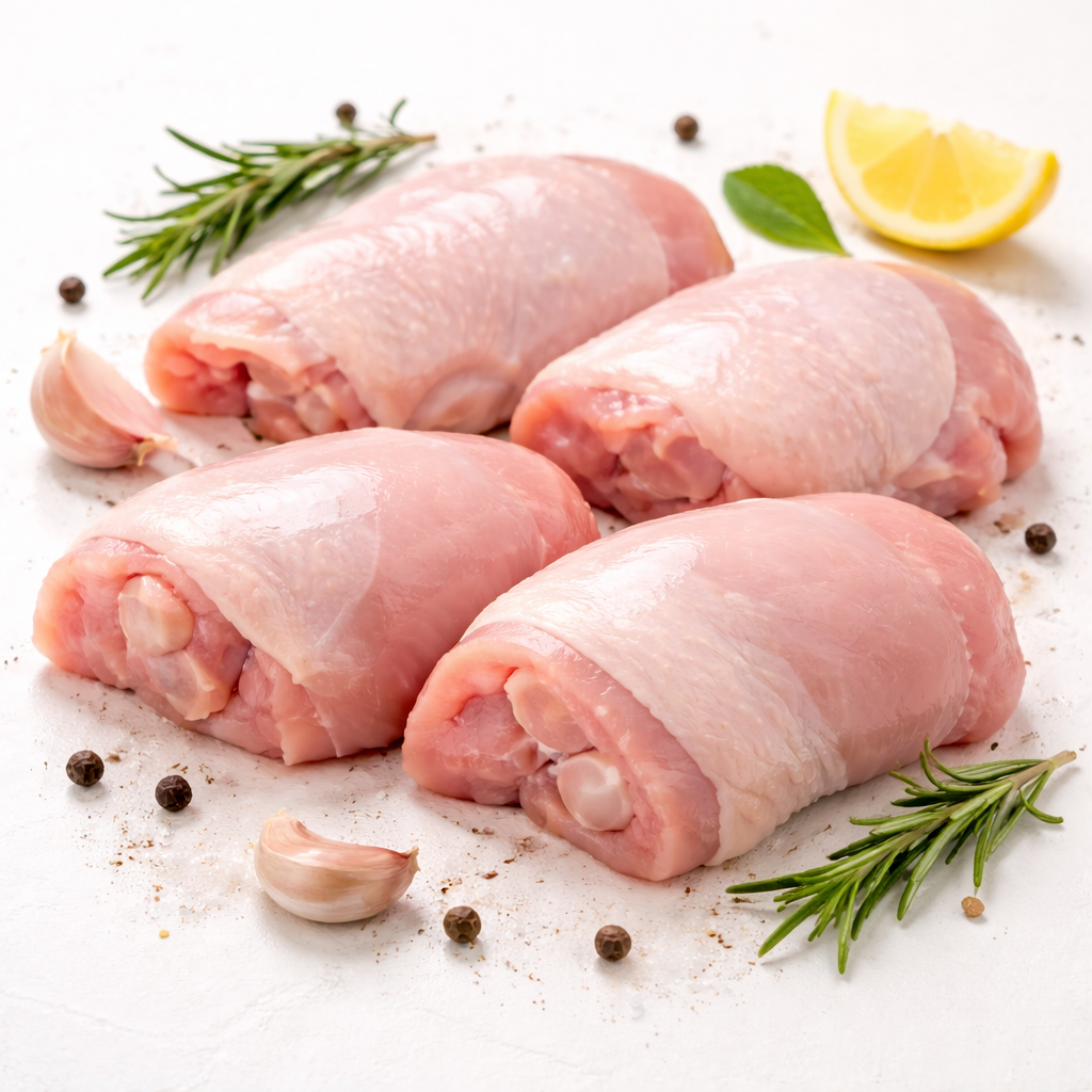Morceaux tendres et savoureux, les hauts de cuisses de poulet sont parfaits pour de nombreuses préparations. Leur chair reste juteuse à la cuisson et se prête très bien aux marinades.